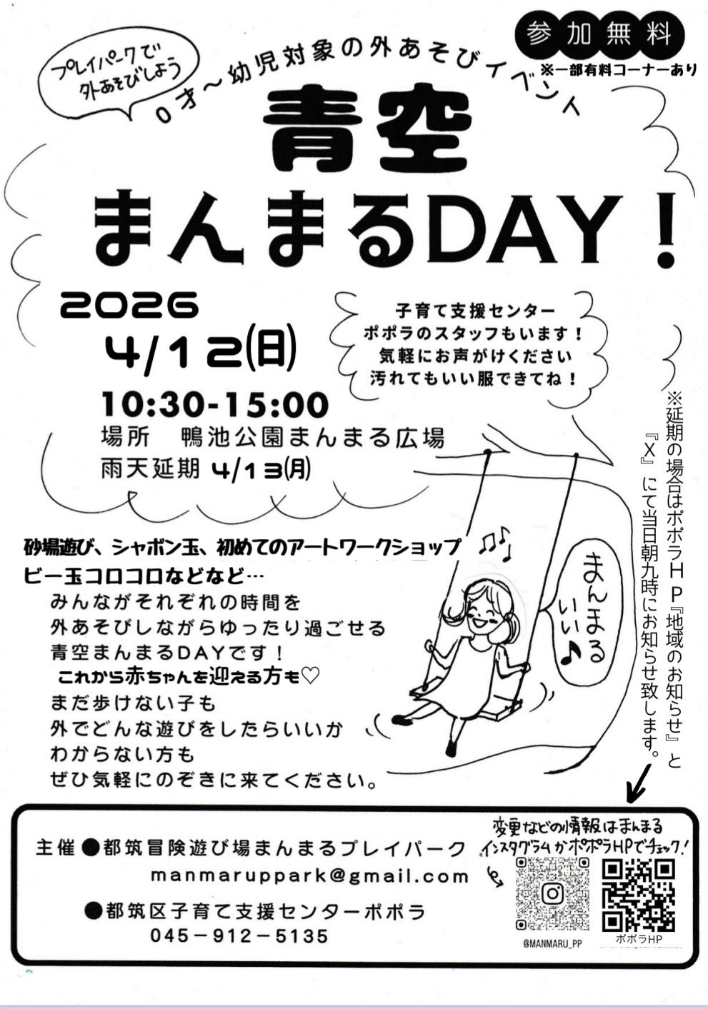 2026.04.12(日)鴨池公園「青空まんまるDAY!」で演奏します! ライブの予定 2026.03.12 2026年4月12日(日)に鴨池公園まんまる広場で行われる「青空まんまるDAY!」で演奏します!私の演奏時間は未定です。分かりしだい更新します。ぜひお越しください!